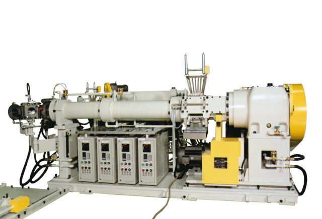 医療用やラボ用などに使用されるスクリュー径φ20㎜クラスの小型押出機から、材料のストレーニング用途やタイヤ、防振製品など押出量を必要とされる製品に使用されるスクリュー径φ200㎜以上の大型押出機まで取り揃えております。