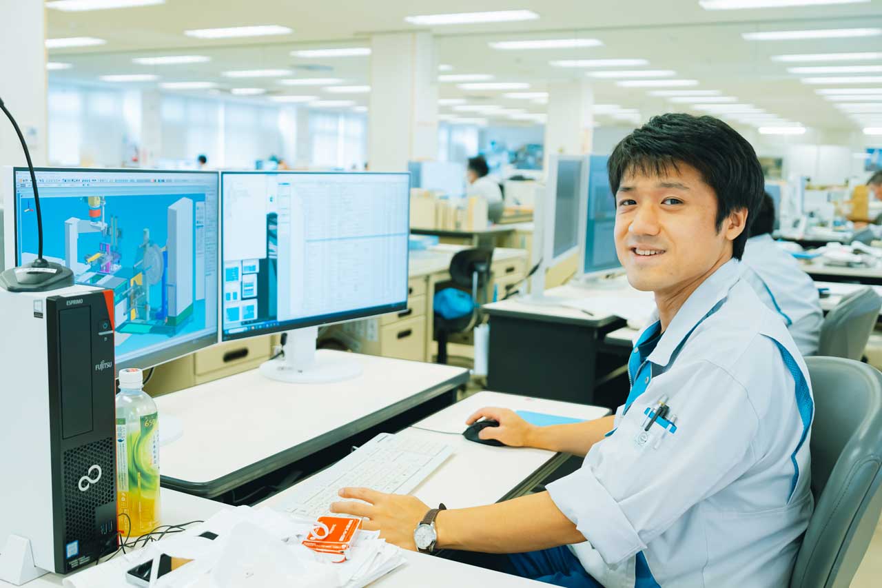 大学では機械工学を専攻していたので、機械設計ができる会社を県内で探していました。 量産品よりも、一つひとつの設計に関われる環境を希望していたところ、会社説明会で「当社の製品はほぼすべてオーダーメイドで設計している」と聞き、自分の理想と一致していると感じました。